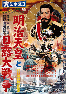 偉大なる明治天皇の仁慈と苦悩を中心に幾多の歴史的日露の大激戦を日本映画史上空前のスケールをもって描いた感動の大スペクタクル帝王巨篇。